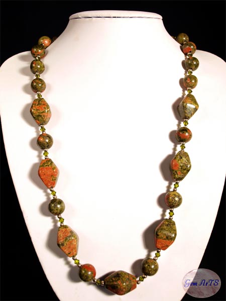 Unakit, 14 mm Unakit, 16x22 mm Swarovski Glasschliffperlen bicone, 4 mm (Olivine) Silberperlen (hartversilbert), 3,2 mm